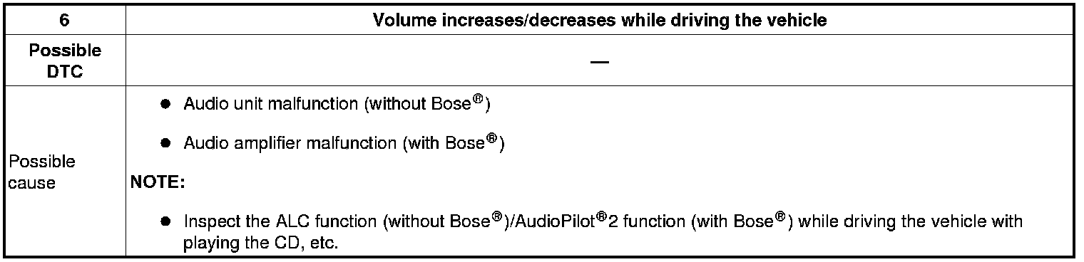 NO.6 VOLUME INCREASES/DECREASES WHILE DRIVING THE VEHICLE [ENTIRE AUDIO SYSTEM]
