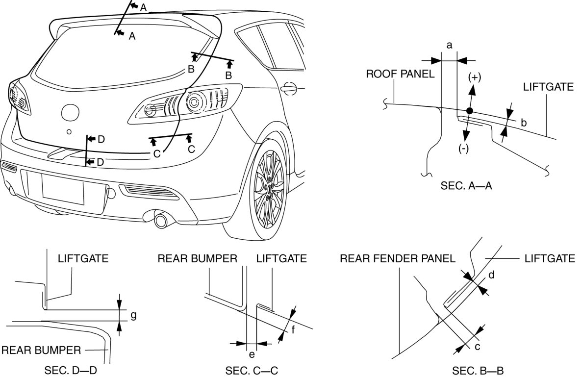 2. Loosen the liftgate hinge installation bolts and adjust the gap by moving the liftgate.