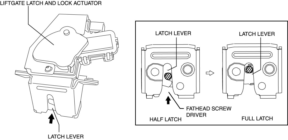 d. Liftgate latch and lock actuator Liftgate Latch And Lock Actuator Removal/Installation