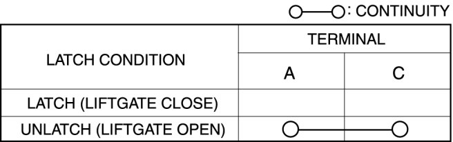 - If not as indicated in the table, replace the liftgate latch and lock actuator