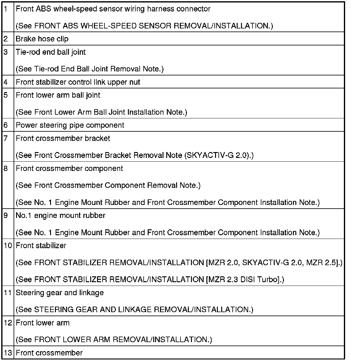Front Crossmember Bracket Removal Note (SKYACTIV-G 2.0)