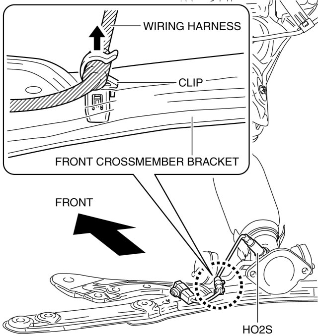 1. Disconnect the wiring harness connecting to the front crossmember bracket.