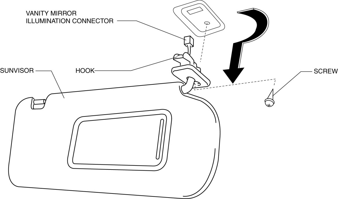 5. Disconnect the vanity mirror illumination connector. (Vehicles with vanity mirror illumination)