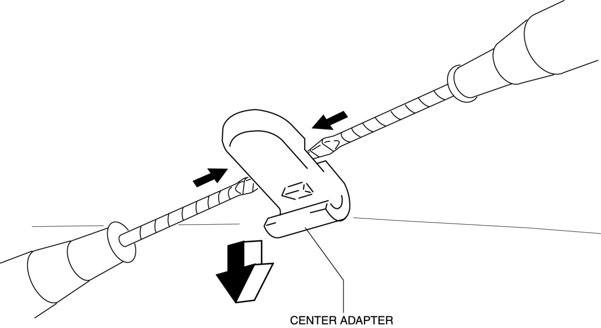 6. Press the center adaptor tabs as shown in the figure using two tape-wrapped flathead screwdrivers, and remove the center adaptor.