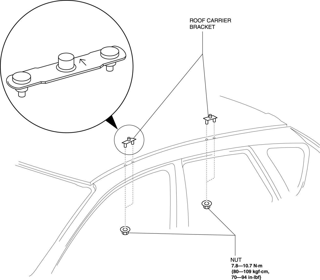 - Install the roof carrier bracket so that the arrow on it faces inward.