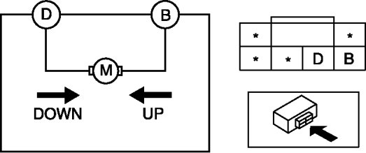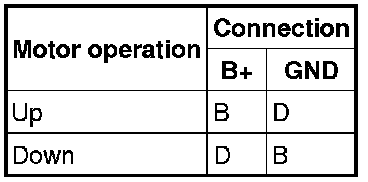 4. Apply battery positive voltage to the front tilt motor terminals and inspect the front tilt motor operation
