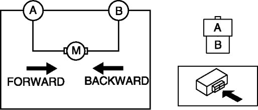 4. Apply battery positive voltage to the recliner motor terminals and inspect the recliner motor operation.