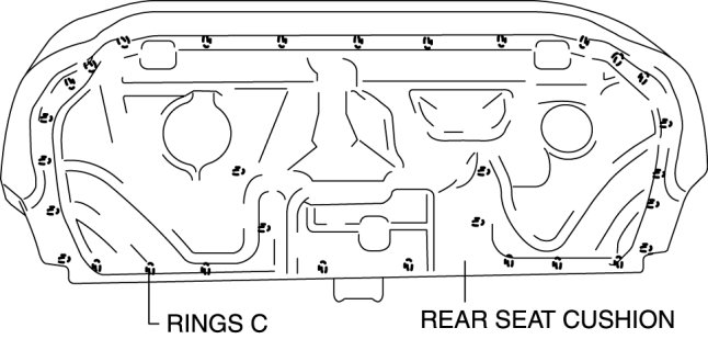 2. Remove rings C, then remove the seat cushion trim from the seat cushion pad.