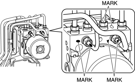 1. Place an alignment mark on the brake pipe and DSC HU/CM.
