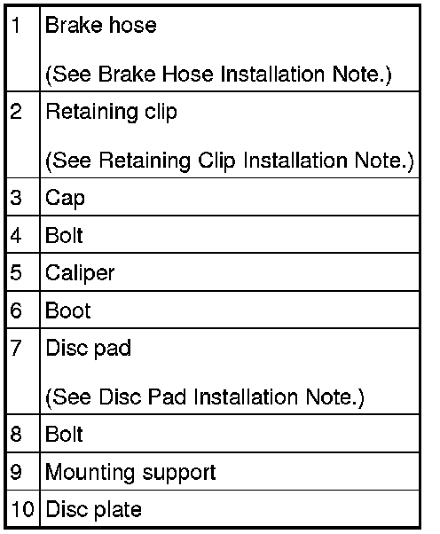 1. Temporarily install the retaining clip to the caliper and mounting support as shown in the figure.