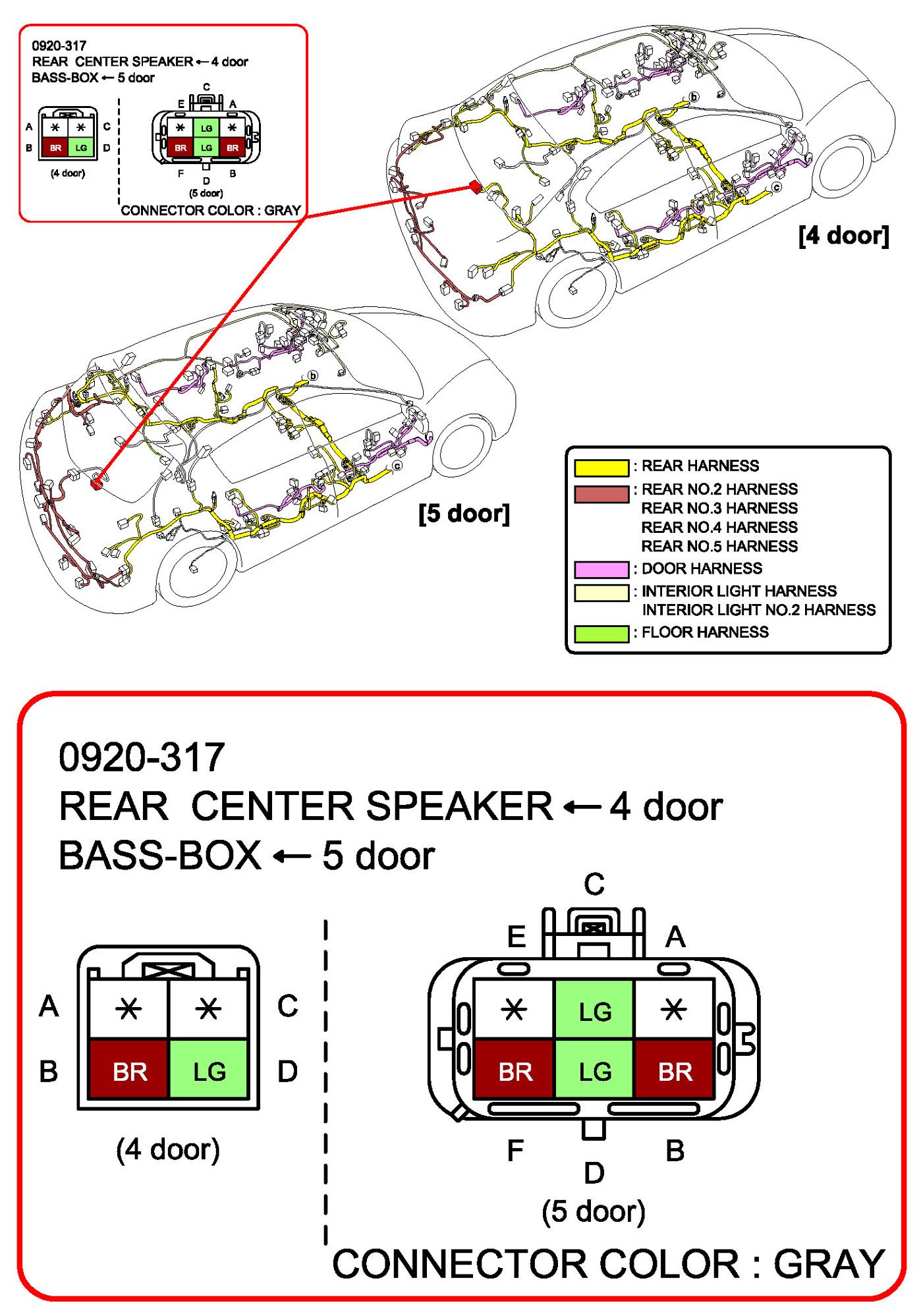 Rear Center Speaker <-- 4 Door, Bass-Box <-- 5 Door