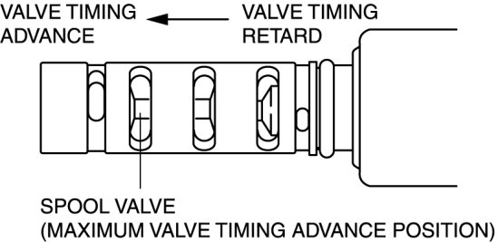 2. Verify that the spool valve in the OCV is in the maximum valve timing retard position as indicated in the figure.