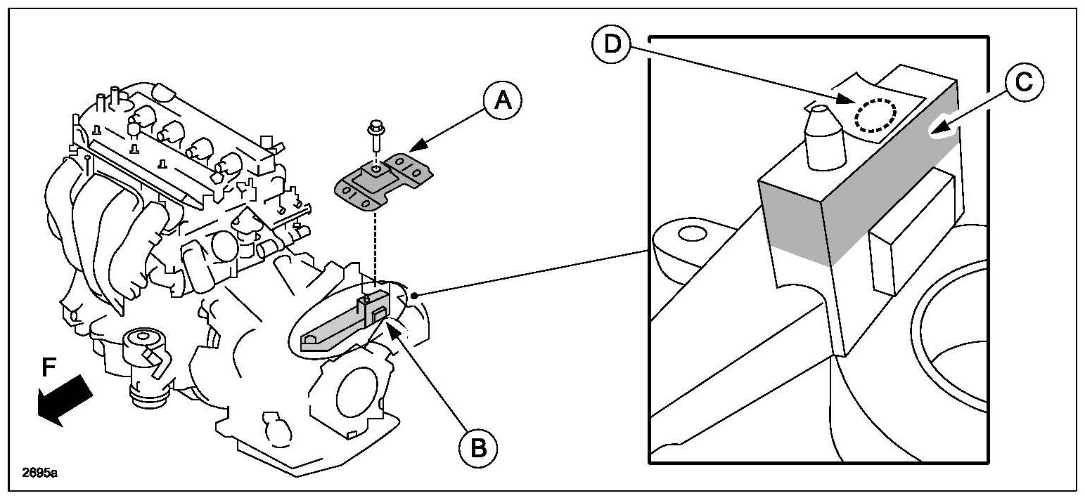 4. Place masking tape over the bolt hole (D) of the No. 4 engine mount bracket to prevent grease from entering the hole.