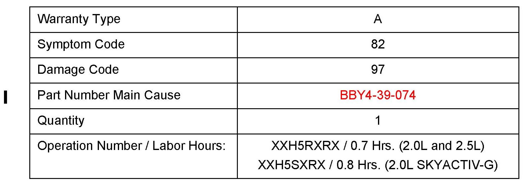 ^ This repair will be covered under Mazda's Powertrain Limited Warranty term.