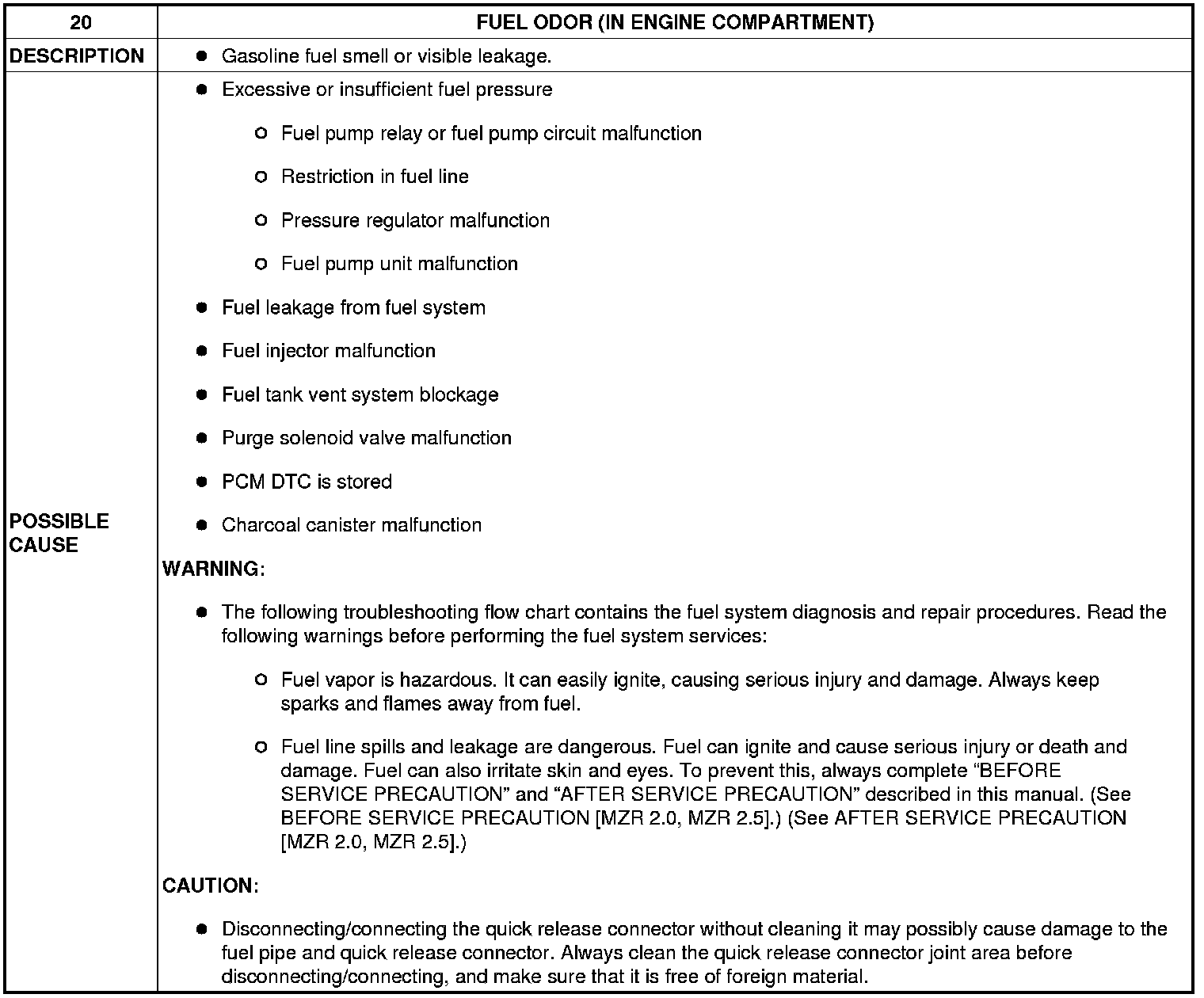 NO.20 FUEL ODOR (IN ENGINE COMPARTMENT) [MZR 2.0, MZR 2.5]