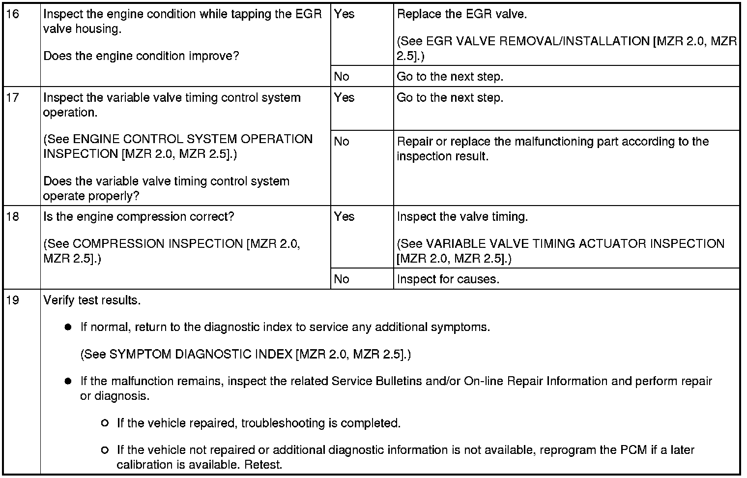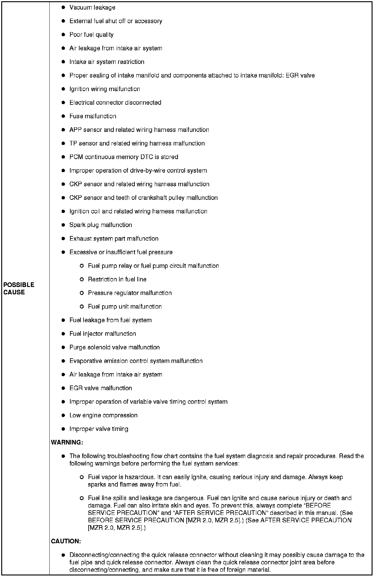 NO.6 CRANKS NORMALLY BUT WILL NOT START [MZR 2.0, MZR 2.5]