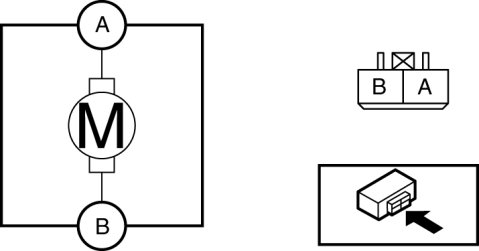 1. Connect battery positive voltage to blower motor terminal A, connect terminal B to ground, and then verify its operation.