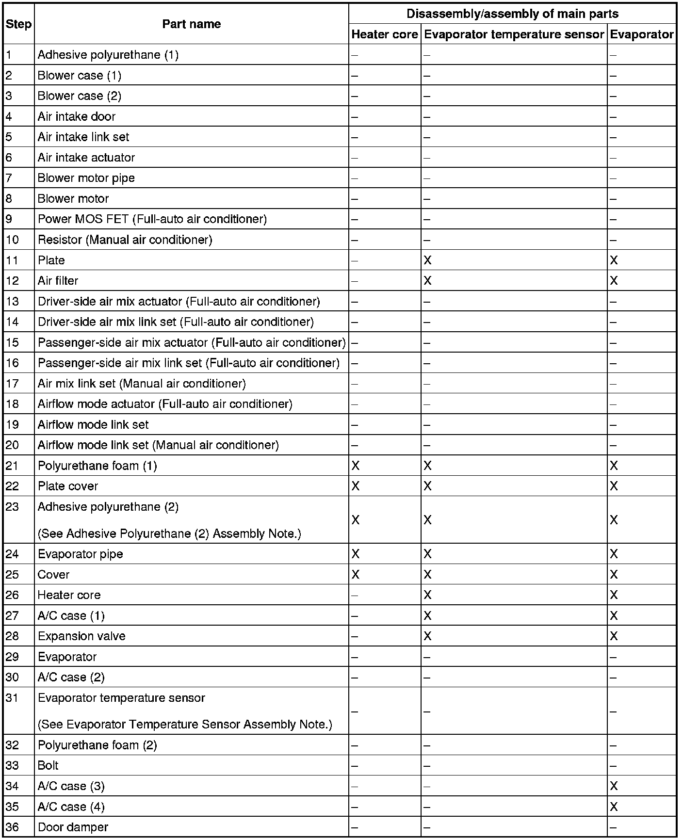 1. Disassemble in the order indicated in the table.