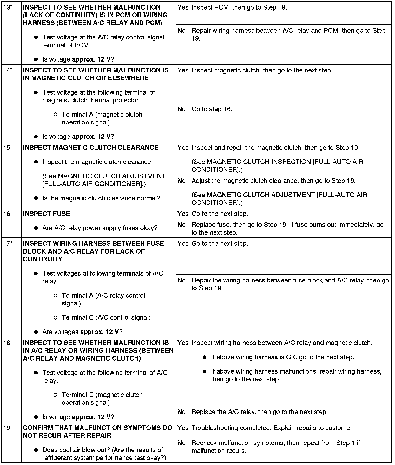 - When performing an asterisked (*) troubleshooting inspection, shake the wiring harness and connectors while performing the inspection to discover whether poor contact points are the cause of any intermittent malfunctions. If there is a problem, check to make sure connectors, terminals and wiring harnesses are connected correctly and undamaged.