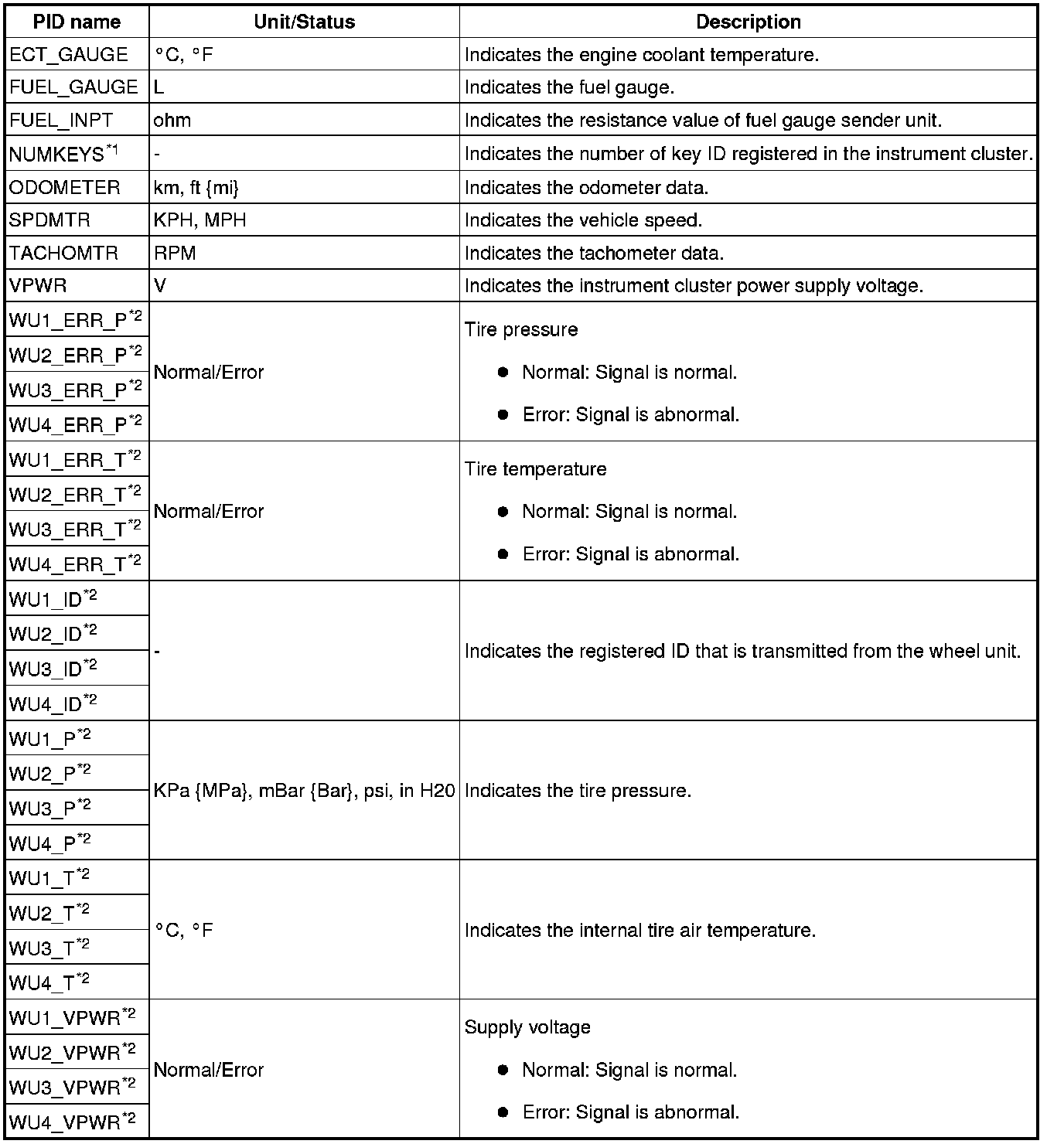PID/DATA MONITOR TABLE [INSTRUMENT CLUSTER]