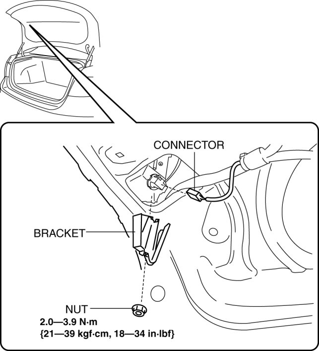 1. Push the bracket onto the trunk lid as shown in the figure and install.