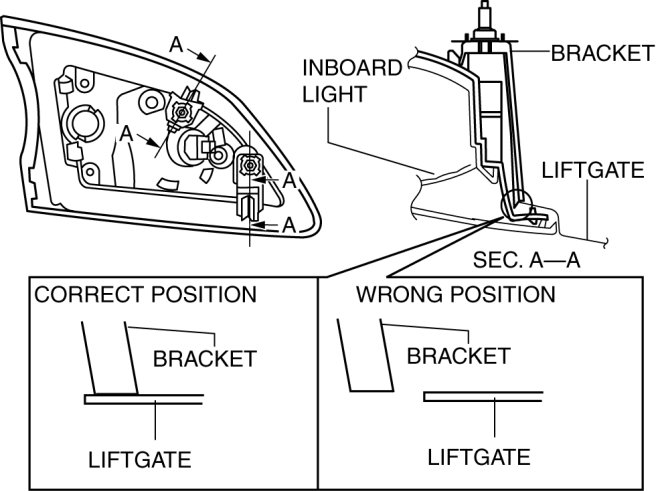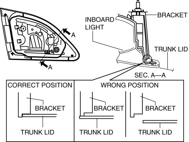 7. Install in the reverse order of removal. (See Inboard Light Installation Note.)