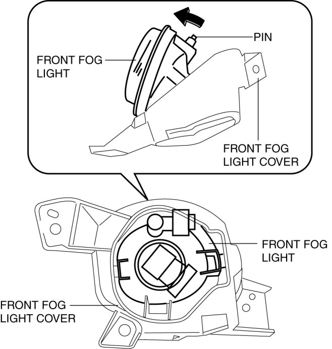 6. Pull the front fog light in the direction of the arrow shown in the figure and remove it from the front fog light cover.