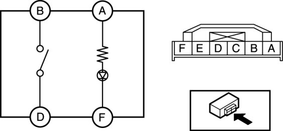 4. Apply battery voltage to hazard switch terminal A, and connect terminal F to ground.