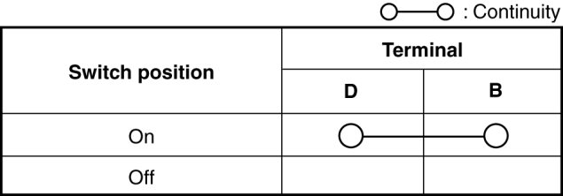 3. Verify that the continuity between the hazard switch terminals is as indicated in the table.