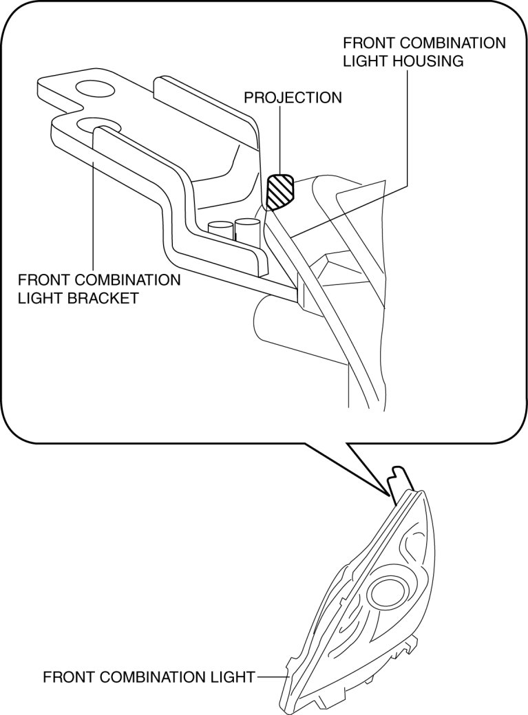 - Verify that the front combination light is not damaged before using the repair bracket for installation when the original brackets are damaged. If the front combination light component is damaged, replace the light as a single unit.