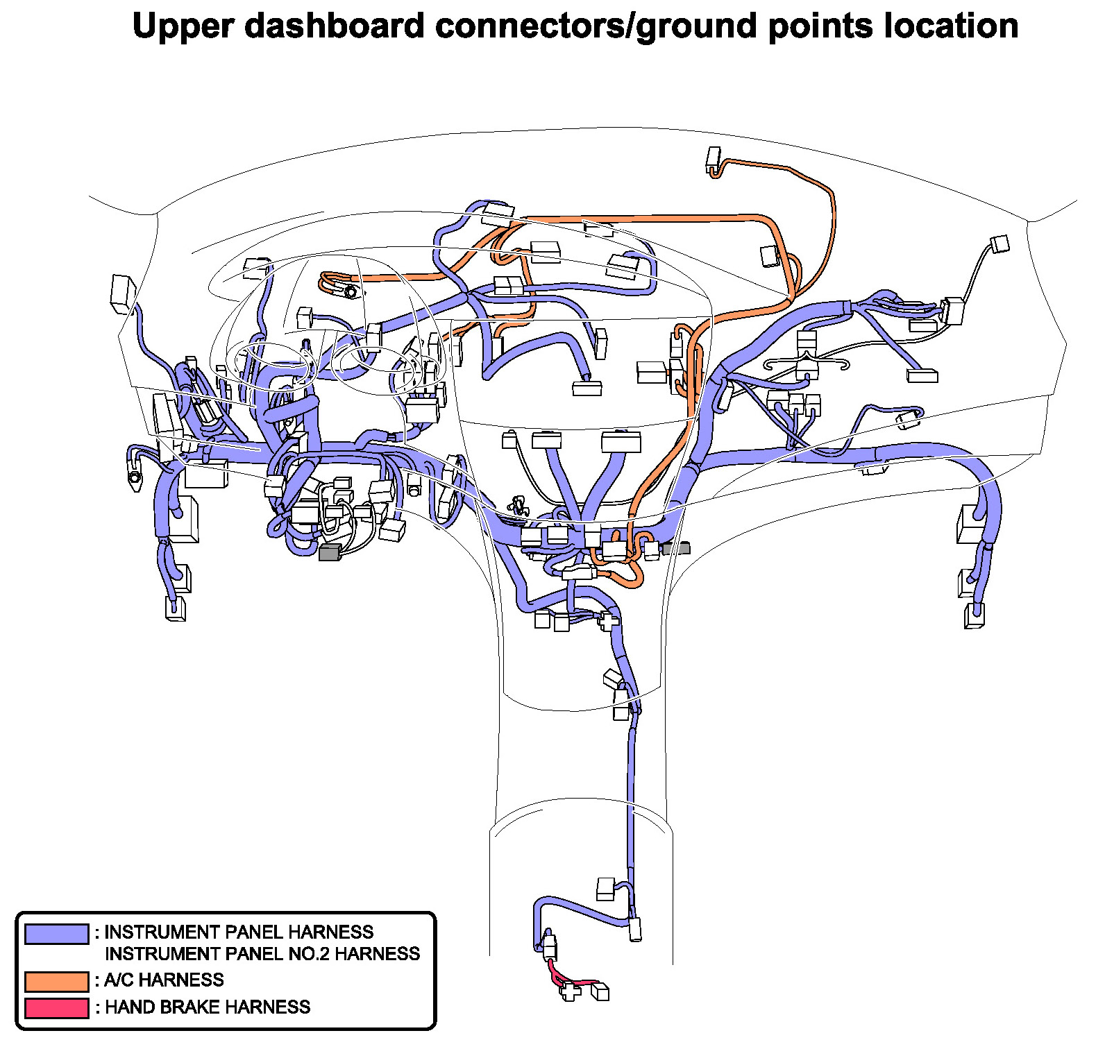 Upper Dashboard Connectors/Ground Points Location