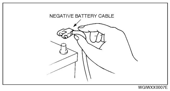 - Before disconnecting connectors or removing electrical parts, disconnect the negative battery cable.