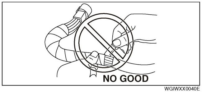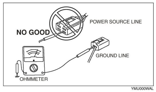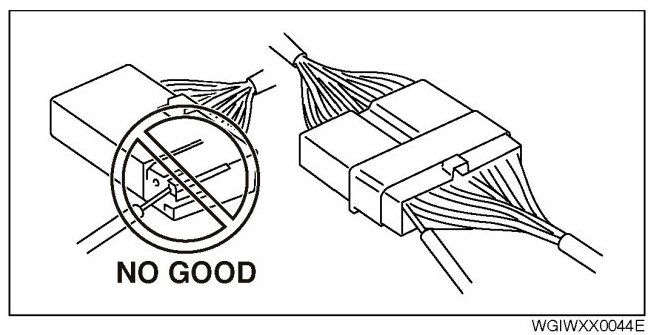 - When a tester is used to inspect for continuity or measuring voltage, insert the tester probe from the wiring harness side.