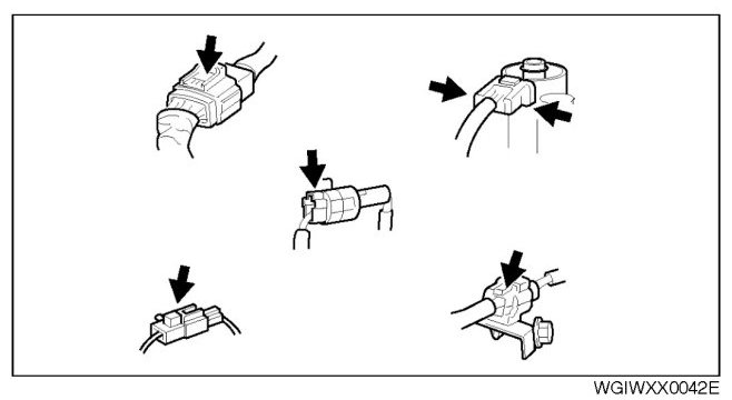 - Inspect the terminals of waterproof connectors from the connector side since they cannot be accessed from the wiring harness side.
