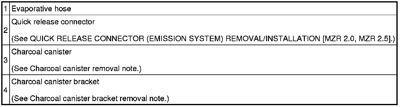CHARCOAL CANISTER REMOVAL/INSTALLATION [MZR 2.0, MZR 2.5]
