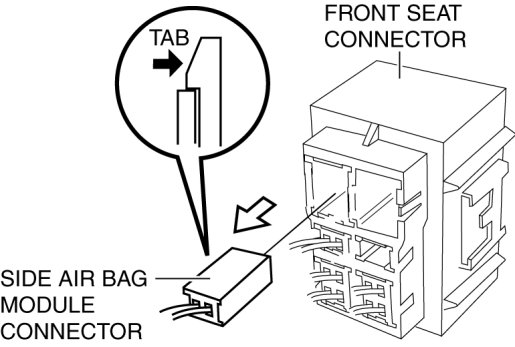 1. Disconnect the side air bag module connector. (Driver side with power seat)