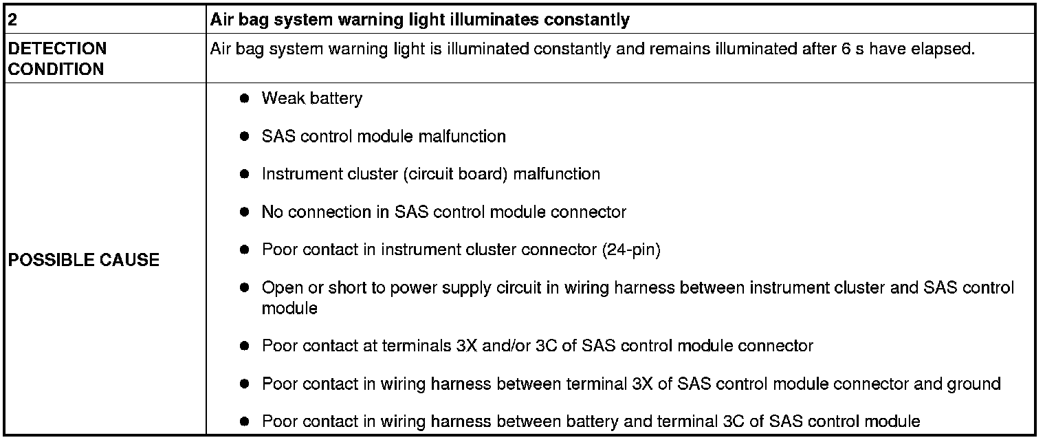 No. 2 Air Bag System Warning Light Illuminates Constantly