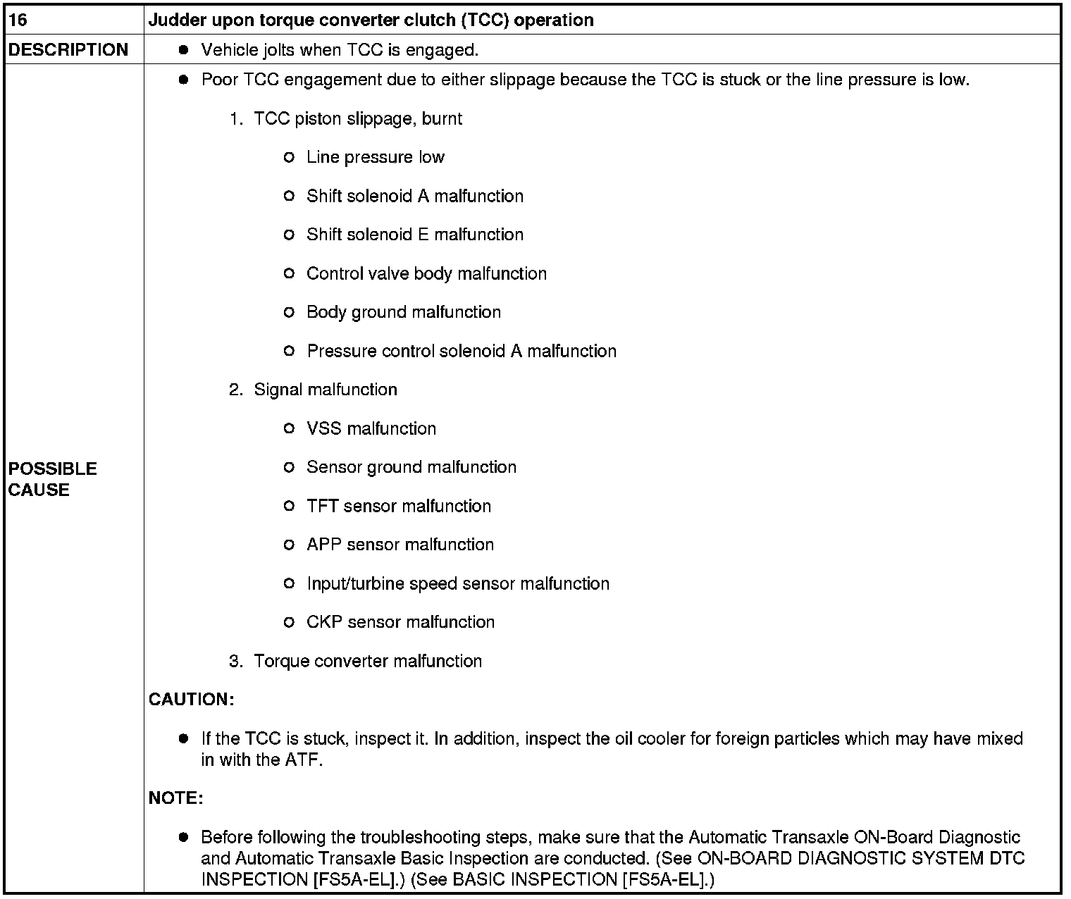 NO.16 JUDDER UPON TORQUE CONVERTER CLUTCH (TCC) OPERATION [FS5A-EL]