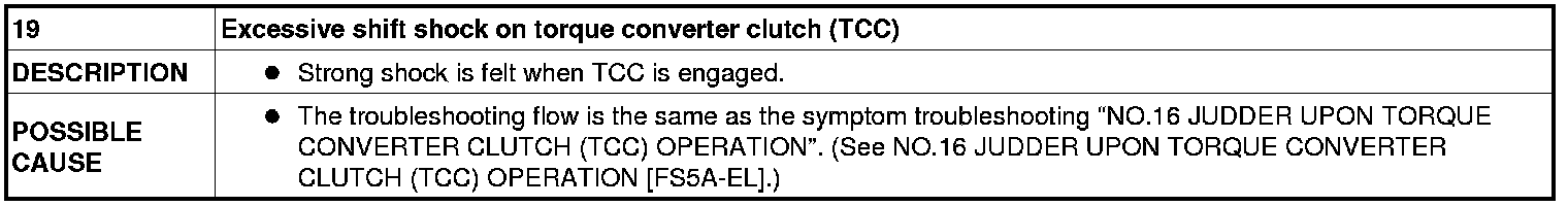 NO.19 EXCESSIVE SHIFT SHOCK ON TORQUE CONVERTER CLUTCH (TCC) [FS5A-EL]