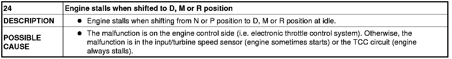 No. 24 Engine Stalls When Shifted To D, M Or R Position [FS5A-EL]