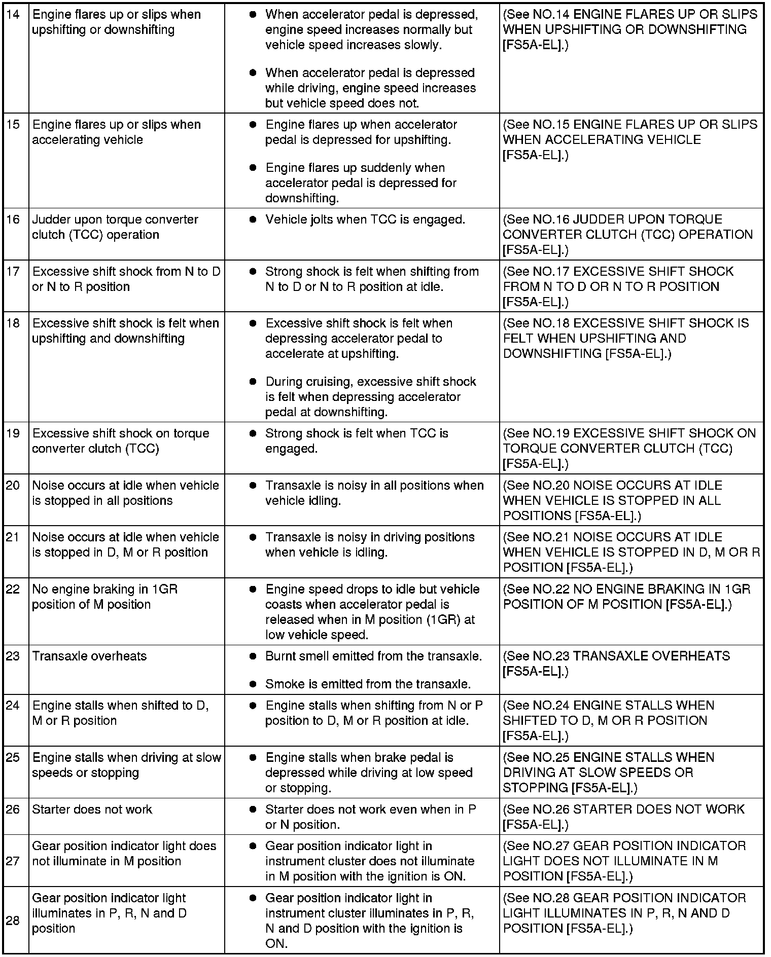 SYMPTOM TROUBLESHOOTING ITEM TABLE [FS5A-EL]