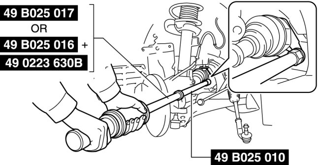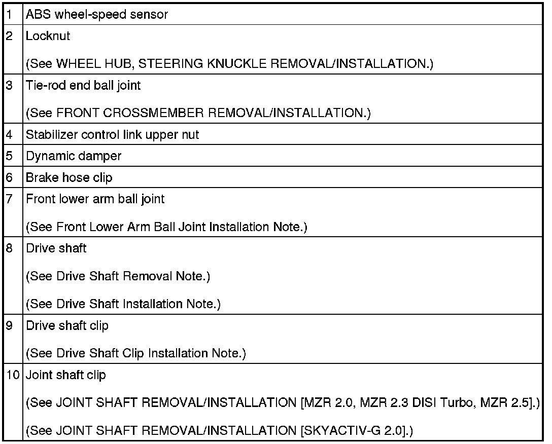 - The right-side drive shaft of MZR 2.3 DISI Turbo equipped vehicles cannot be disassembled. Therefore, replace the front drive shaft as a single unit if there is any malfunction of the boots, boot bands, or constant velocity joints.