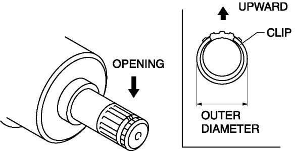 1. Install a new drive shaft clip to the clip groove at the end of the drive shaft with the clip opening facing upward.