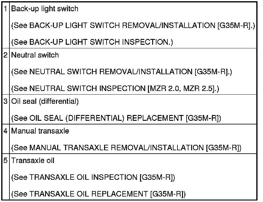 MANUAL TRANSAXLE LOCATION INDEX [G35M-R]