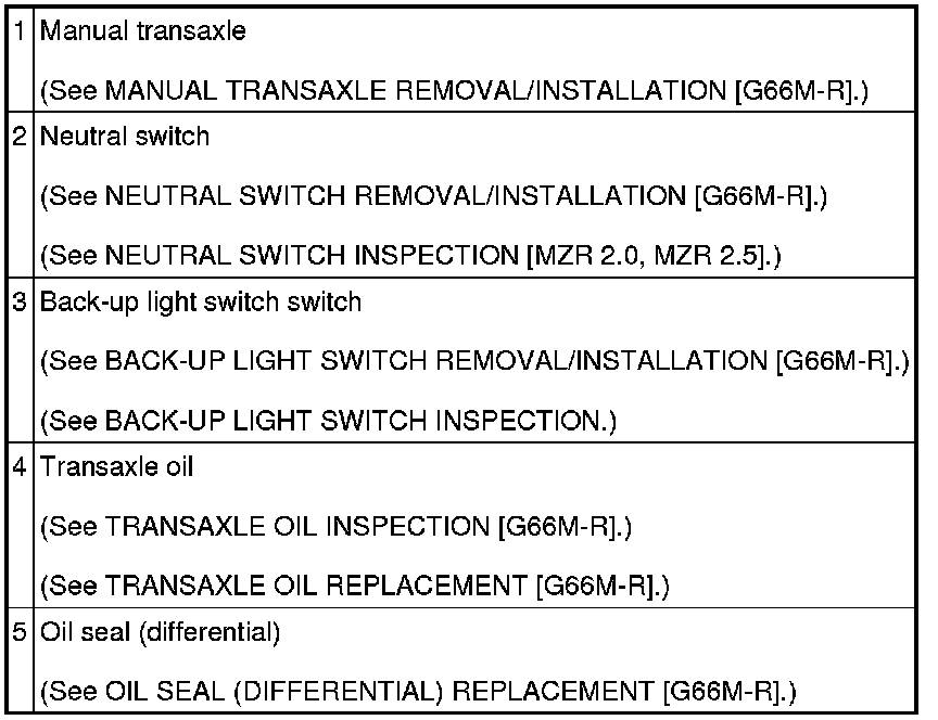 MANUAL TRANSAXLE LOCATION INDEX [G66M-R]