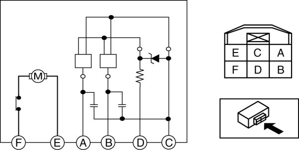 7. Operate the power window motor and measure the voltage at terminals A and B.