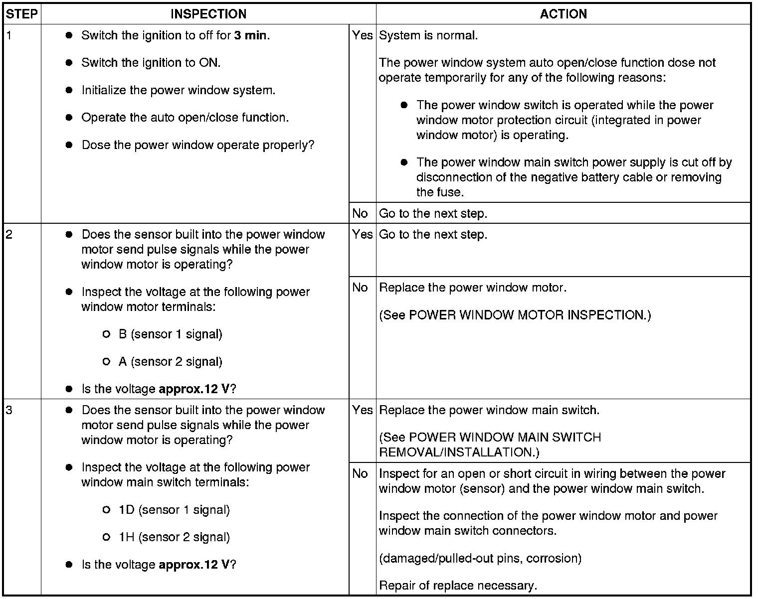 No.1 THE AUTO OPEN/CLOSE FUNCTION ON THE DRIVER'S SIDE POWER WINDOW IS INOPERATIVE [POWER WINDOW SYSTEM]