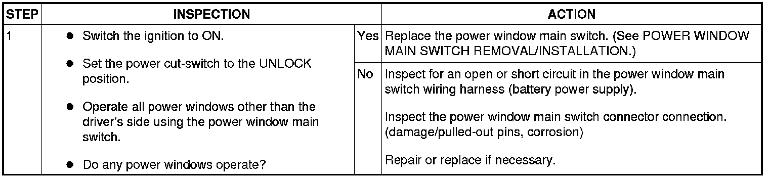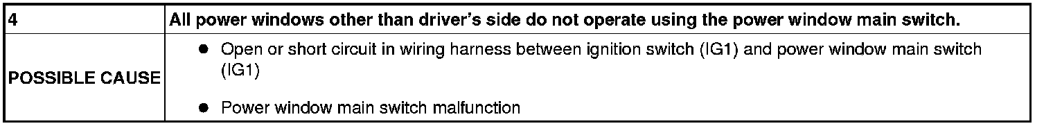 No. 4 All Power Windows Other Than Driver's Side Do Not Operate Using The Power Window Main Switch