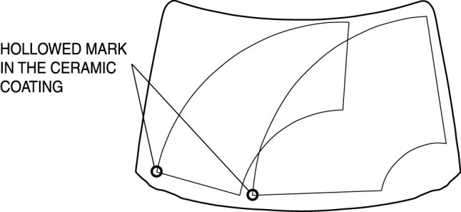 - If the hollowed mark in the ceramic coating cannot be located, measure the distance from the cowl grille end line, and adjust the windshield wiper arm and blade.