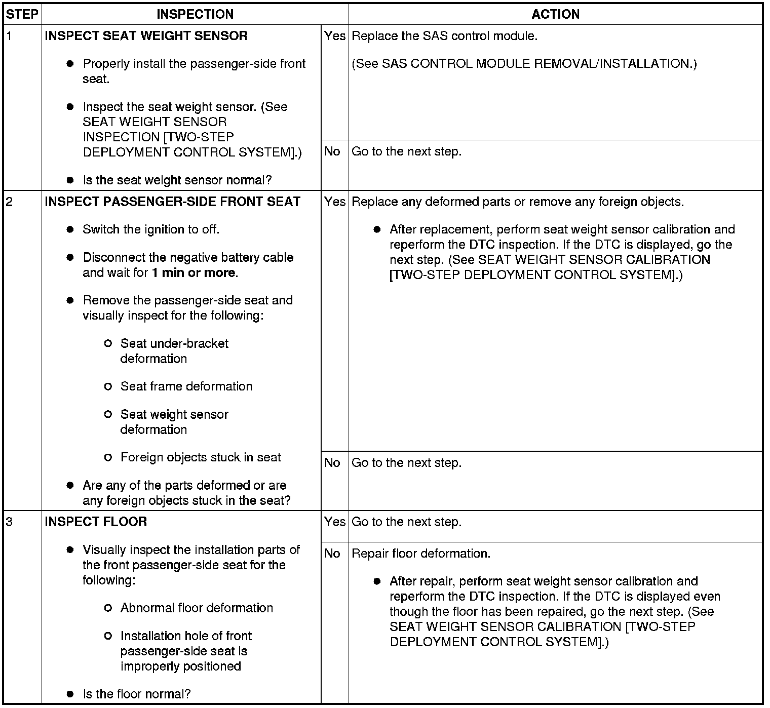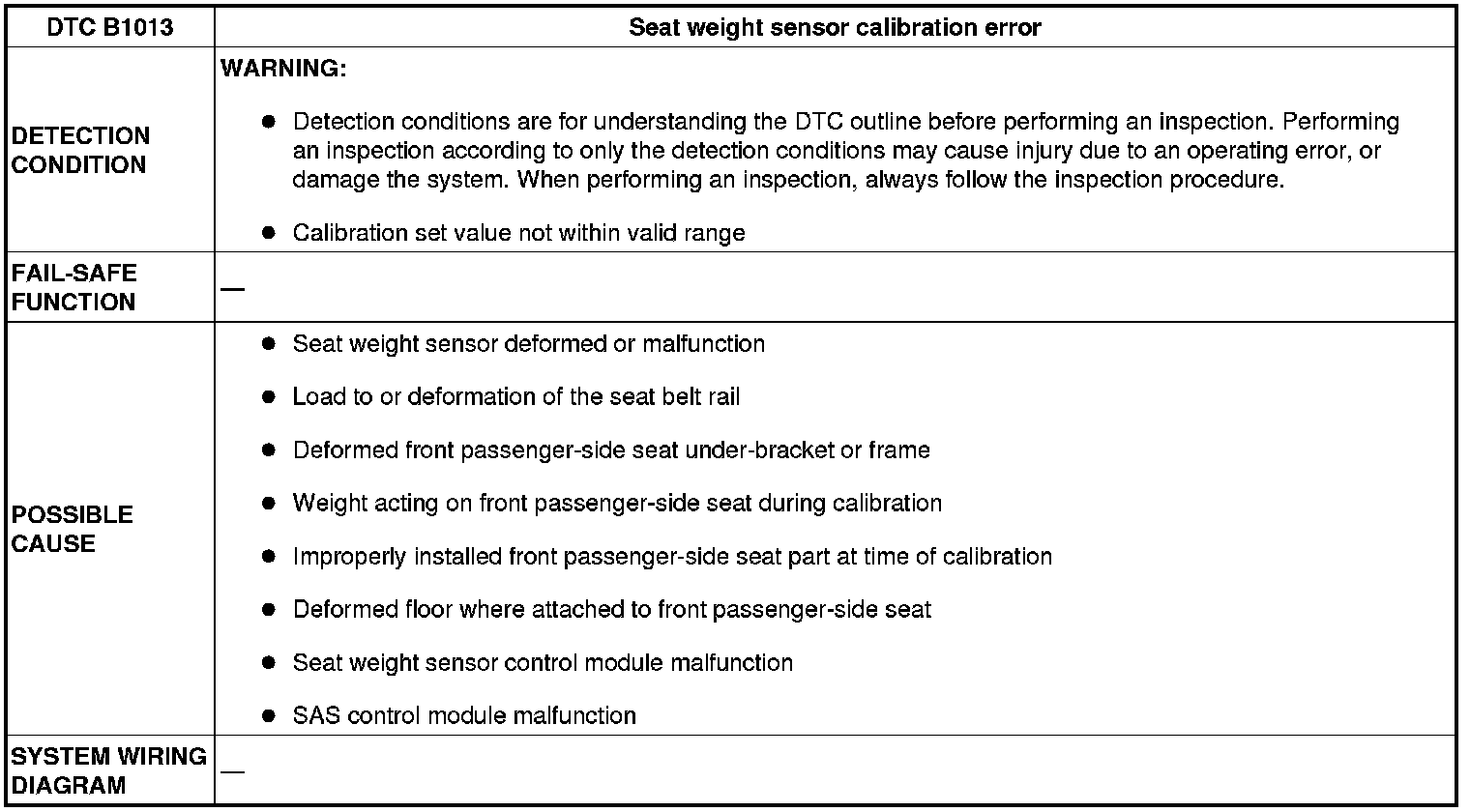 DTC B1013 [TWO-STEP DEPLOYMENT CONTROL SYSTEM]